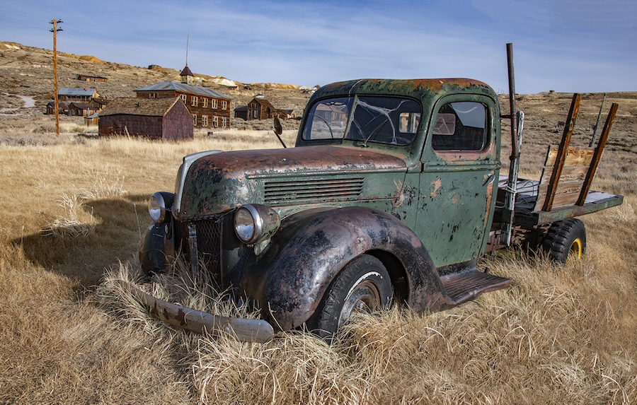 Going Anywhere soon? was taken in Bodie, a historical State Park in California. The mining town has been left to decay. This truck was one of those objects and is not far from an old Shell gas station with the old style pumps and a metal shell-shaped sign with multiple bullet holes. What is nice is that the truck stands out, but the old buildings in the background provide context.