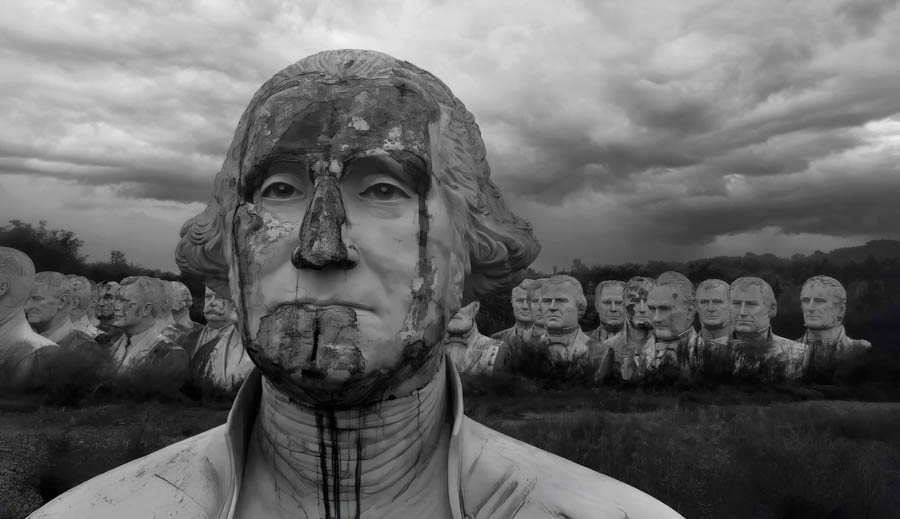 This is a photo of the “Abandoned Presidents Heads” which are now on a farm near Williamsburg, Virginia.