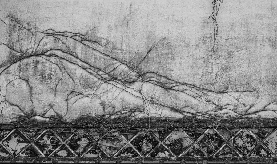 This photo was taken in Kurashiki Japan, a beautiful town with a well-preserved historic district and a canal running through it. Amidst the beautiful colors was this wall that had been taken over by nature, creating its own mosaic on top of the man-made tiles. The angles and the movement of the vines on the wall and tiles drew me in.