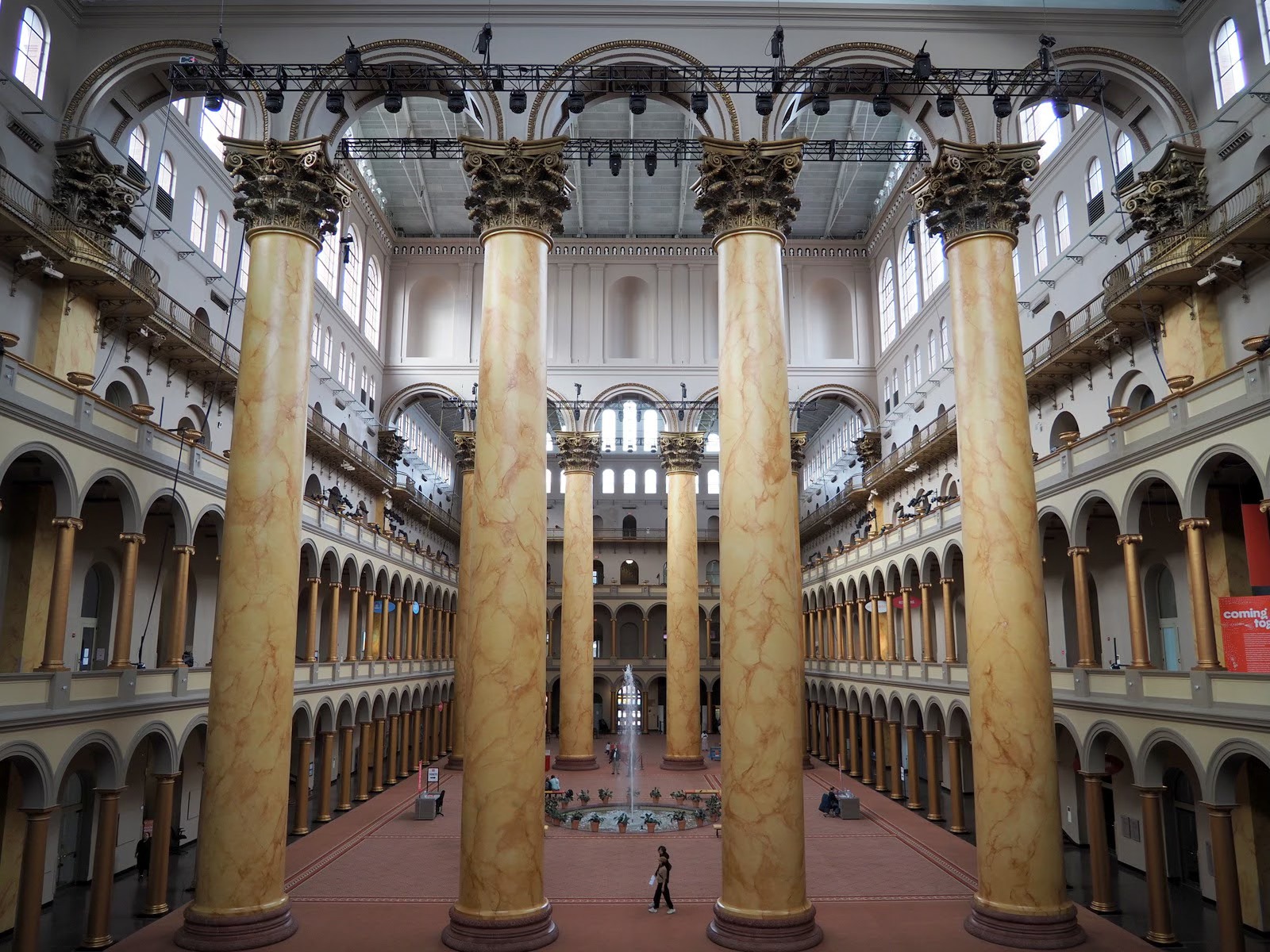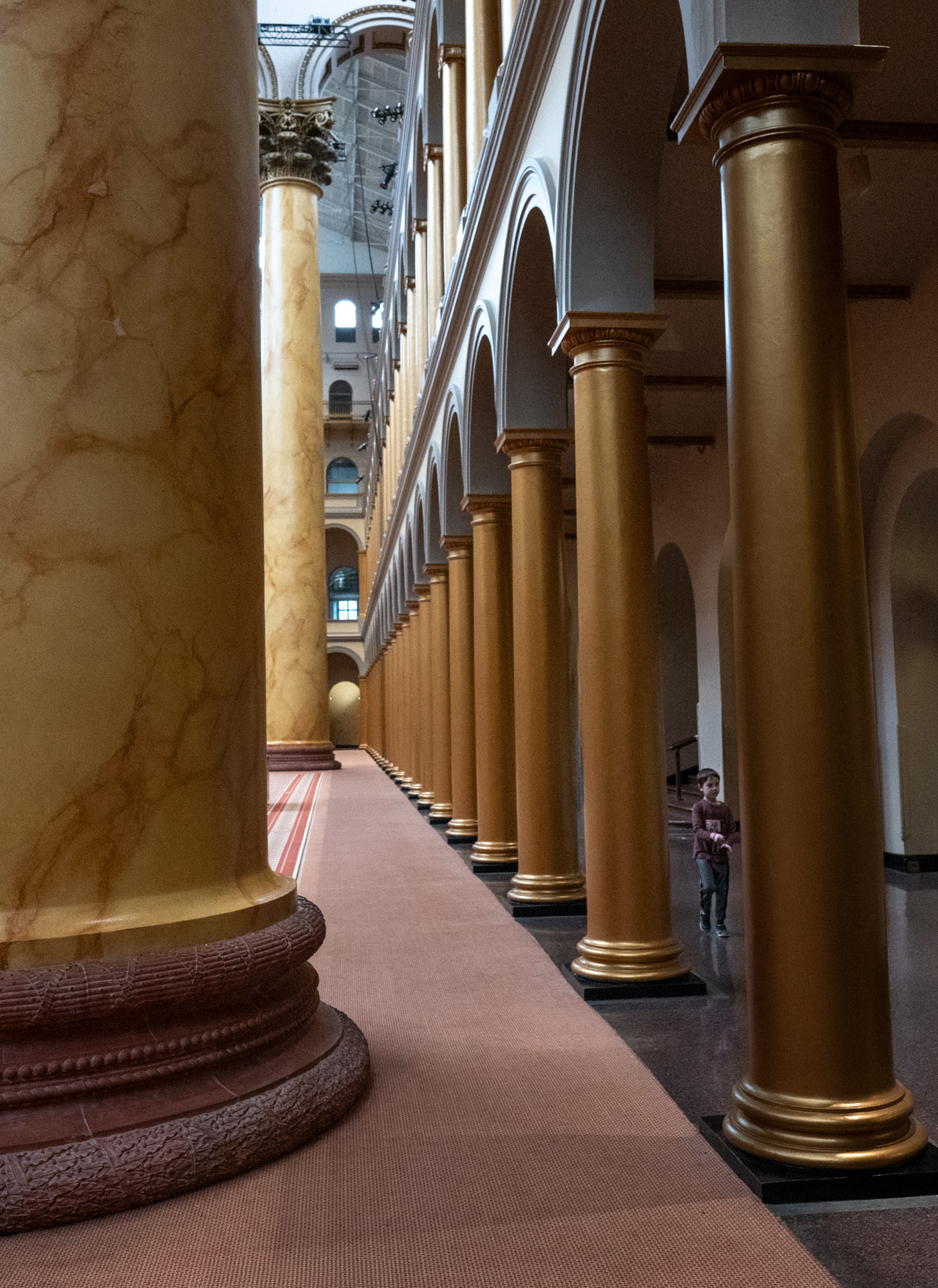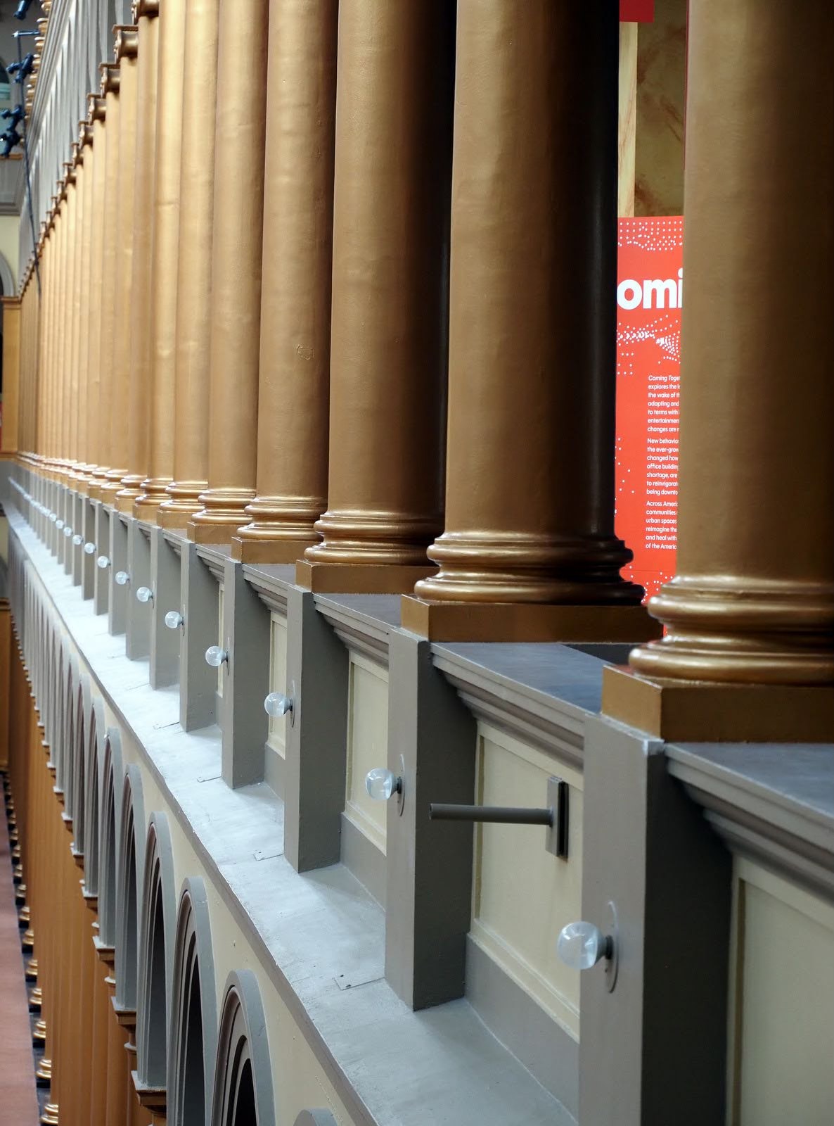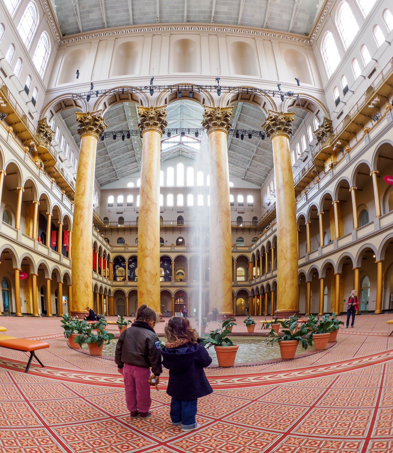 The National Building Museum building was completed in 1887. It originally served as the Pension Bureau Headquarters Building for veterans, and the families of veterans, of the Civil War. It is a great location for taking photos of amazing architectural details, repeating patterns, and framing scenes between the massive seventy-five feet tall columns. Images from the trip, below, were submitted by Gerry Woods, Dennis Freeman, Tanya Riseman, Diane Sanders, Lisa Auerbach, and Sherm Edwards.