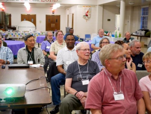 The End of Year Celebration on June 8 was a great success! We had a potluck dinner at our regular meeting location in Fellowship Hall, mingled, and then handed out awards to recognize the year’s outstanding photographers. Many attendees won terrific raffle prizes! The relaxed atmosphere and easy circulation through the large space allowed members to socialize. Here are a number of photos from our celebration, thanks to Andrew Rein and Sue Green: