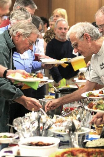 The End of Year Celebration on June 8 was a great success! We had a potluck dinner at our regular meeting location in Fellowship Hall, mingled, and then handed out awards to recognize the year’s outstanding photographers. Many attendees won terrific raffle prizes! The relaxed atmosphere and easy circulation through the large space allowed members to socialize. Here are a number of photos from our celebration, thanks to Andrew Rein and Sue Green: